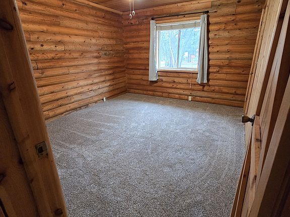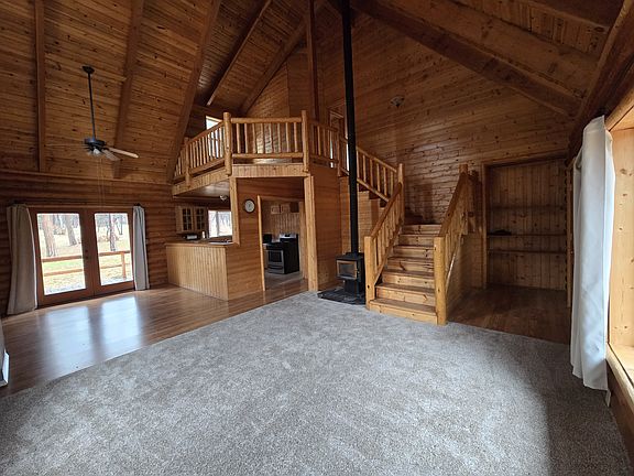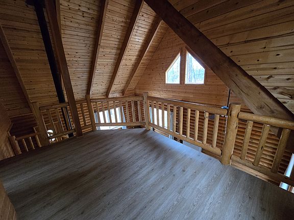Log house nested in tall shady pines on 11 acres with beautiful T&G pine inside with tall vaulted ceilings and a open loft.