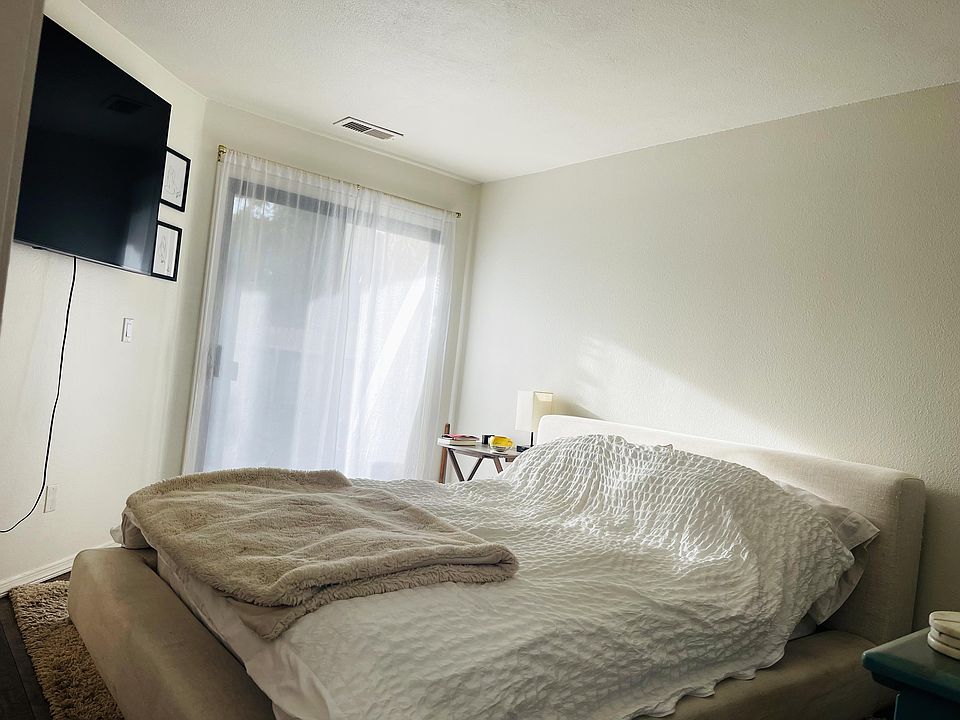 ROOM FOR REST: SPACIOUS PRIVATE ROOM WITH EN-SUITE BATHROOM IN PRIVATE COMMUNITY Looking for a comfortable, peaceful place to call home? Offering a large private room with its own bathroom in beautiful, quiet community. WHAT YOU'LL LOVE: -Comminity Perks: Enjoy access to tennis courst, large swimming pool, a hot tub, and a BBQ picnic area -Your Space: The room is the larges in the condo, located on the opposite side for maximum privacy. It features a large closet and access to a shared patio. -Frunishing Options: Rent in unfurnished for $1500 or furnished for $1700, complete with queen-sized bed, dresser, coffee table and 55-inch TV -Prime Location: Only 20 minutes from downtown, airport, with shopping, restaurants, a movie theather and freeway access just minutes away ABOUT US: We are two busy sisters (typical 8-5 schedules) sharing the home, but we live pretty separate lives. We also have a lovable dog and cat - both are freindly and well behaved. WHAT WE ARE LOOKING FOR: Open to femal and male roomates. We simply ask you keep the common areas clean and pick up after yourself just like we do in respect for multiple people in the home. Must have proof of umployment. Happy to socialize together or leave you be. If this sounds like your ideal living situation, reach out! We'd love to show you the space. -Utilities are not included. 6 months is the shortest lease we will offer. 1 year lease term preferrable. Able to provide continuing 6 month or 1 year lease options if you would like to renew.