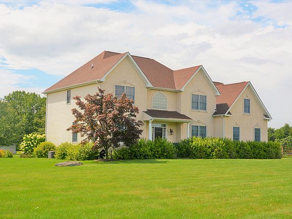 This spacious Custom Built Colonial, located on a quiet cul de sac in the Penn Meadows Development, offers 4 bedrooms and 2.5 bathrooms. The 1.24 Acre corner lot with farm views is located on a quiet country road in Springfield Township, Bucks County, with low maintenance perennial gardens, beautiful rose bushes and an established garden hideaway. On the main level, you'll find a beautiful kitchen with extra tall cabinets, Moen faucets, ceramic tile floor and a walk-in pantry. The formal dining room with cove ceiling, spacious living room with hardwood floors and a wood burning fireplace, office/den with glass french doors, laundry room and half bath are also on the main level. The solid oak hardwood staircase leads upstairs where there are 3 large bedrooms and a huge master bedroom with vaulted ceilings, walk-in closet, an attached sitting room, an additional room & master bath, which has a large walk in shower and separate whirlpool soaking tub. The basement has 8 1/2 ft ceilings. Full 1800 + SQ FT Basement with Separate Entrance and 8.5 foot ceiling that can be finished and converted to livable space with Poured Concrete Floor and Walls. Two Car Garage with Electric Openers. Well maintained energy efficient oil heating system, 200 amp electric service, and new air conditioning unit. Conveniently located near Shopping, Dining, Entertainment, the Pennsylvania Turnpike Lehigh Valley and Quakertown Interchanges, Route 309, 22 and 78. Close to the Lehigh Valley and Montgomeryville.