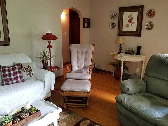 This vintage full-brick home is waiting for your improvements. The eat-in kitchen has been beautifully updated. The living room is large but cozy and features original hardwood floors that continue down the hall and into both bedrooms. The main floor also includes a remodeled bath. The first floor windows have been replaced with the exception of the living room picture window. The enclosed breezeway with access to front and back yards holds a spacious laundry area and connects to the garage. Venture upstairs to the finished half story. Use your imagination! Currently finished in knotty pine, the space holds plenty of closet and storage space and could be additional bedrooms or game room. The basement will need a major remodel but holds another possible bedroom, family room and full bath as well as workshop or storage space. All of this is located on almost a half acre with a great roomy get-away/man cave/she shed/workshop in the back yard. Don't miss your chance to make this home your very own! This home is being sold in "as is" condition. A $445 HSA Home Warranty is included.