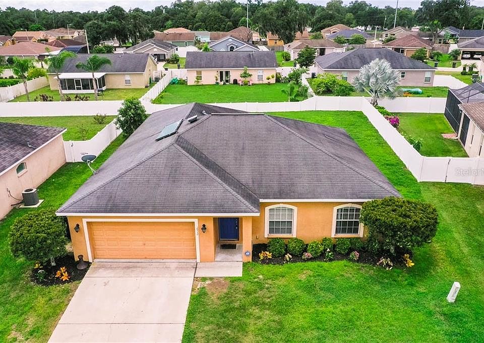 SPACIOUS 8 year-young 4 bedroom, 2 bath Highland Homes Wallace II Model located in the Enclave at Imperial Lakes subdivision, convenient to Lakeland, Plant City and Bartow. This 1,800+ home features a FORMAL LIVING ROOM, FAMILY ROOM, large MASTER BEDROOM with EN-SUITE BATHROOM and WALK-IN CLOSET, 3 generously sized secondary bedrooms and 1 additional bath in a SPLIT bedroom FLOOR PLAN. The KITCHEN boasts solid wood cabinetry, double sinks with disposal, closet pantry and STAINLESS STEEL APPLIANCES. The DINING AREA is located between the Kitchen and Family Room with SLIDING GLASS DOORS leading out to a huge 23' x 10' ENCLOSED SCREENED LANAI. CERAMIC TILE FLOOR THROUGHOUT (NO CARPETING!), Vaulted and Volume Ceilings, CEILING FANS in the Family Room and all bedrooms, INSIDE LAUNDRY CLOSET with WASHER/DRYER add to the interior included features of this well-maintained home. The exterior has a VINYL FENCED BACKYARD, IRRIGATION SYSTEM and 2 CAR GARAGE. Eligible for USDA FINANCING with $0 money down! Make an appointment to view this beauty today!