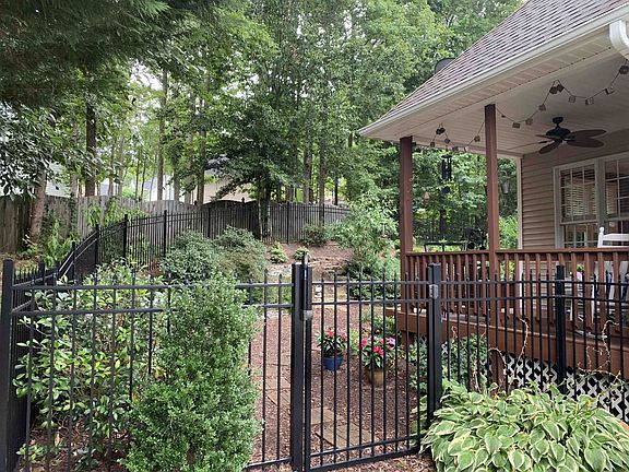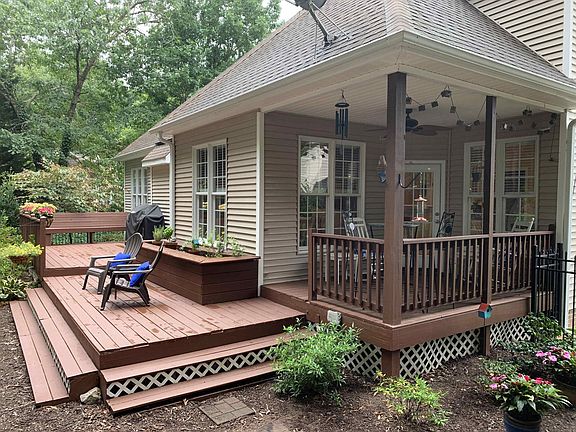 Discover this stunning home nestled in Wake Forest where timeless sophistication meets modern comfort. End of a tranquil cul-de-sac, this 3 bdrm home offers privacy and serenity. The care & attention invested in this home are evident, new roof/2018. 1st level:Gas furnace/AC unit 2018. 2nd Level Heat pump 2011. Side-entry garage equipped w/ EV charging. Step outside & discover your very own private oasis, complete with meticulously landscaped grounds that invite you to unwind & soak in the tranquility. Imagine enjoying your morning coffee on the covered porch or hosting gatherings on the expansive deck that spans the back of the house. 5' fenced backyard. 1st fl hardwood floors. Remodeled 1st floor primary suite/bathroom. The location offers convenient access to the Smith Creek walking trails, inviting you to explore the beauty of nature at your doorstep. Embrace the joy of shopping & modern convenience w/proximity to the community pool, Triangle Mall, & restaurants. As you ascend to the 2nd floor, you'll discover 2 additional bedrooms with new carpeting, along with a bonus room/office and extra walk-in storage.