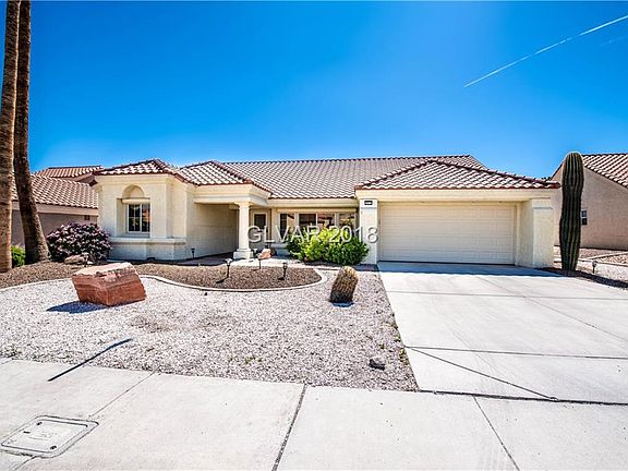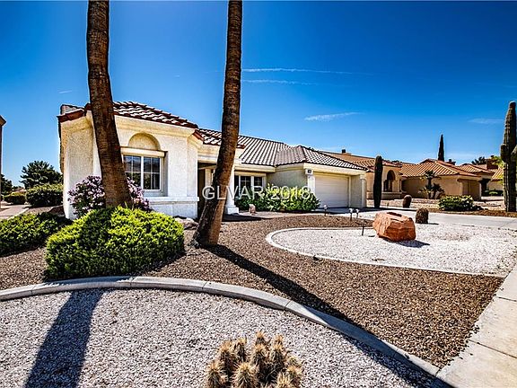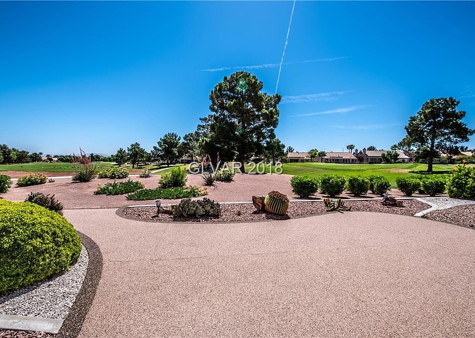 AMAZING GOLF COURSE LOCATION! Watch the golfers on both tee box and green from your covered patio! Gourmet kitchen has new double oven, stove top, dishwasher and fridge! Open floor plan, with vaulted ceilings! Meticulously maintained home has indoor laundry room with sink and cabinets, garage has cabinets, finished floors, water softener and newer garage door opener! Front yard boasts views of Summerlin mountains! Not in ball flight path!