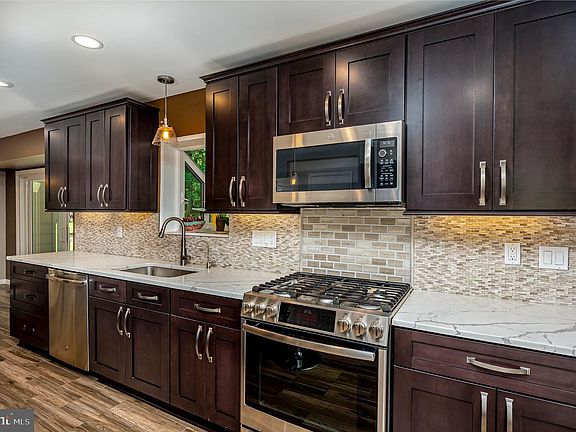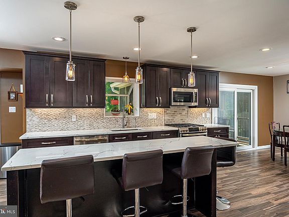 Incredible opportunity to own a single family home in Turf Valley Overlook located on a cul-de-sac and backing to parkland! Stunning upgrades include a custom, paver walkway; covered front porch with low maintenance railings; amazing kitchen renovation with rich wood cabinetry, on-trend quartz countertops, upgraded stainless steel appliances, huge, 8 island with plenty of prep space and seating for four, custom backsplash, beverage center with six bottle wine refrigerator, and open concept to the large dining area with upgraded lighting; family room with vaulted ceilings and a cozy gas fireplace; main level 5th bedroom/office; spacious living room with soaring ceilings; four bedrooms on the upper level, all with hardwood floors; finished basement with rec room and bonus room that is ideal for a home office or home gym. Relaxing, low mantenace screened porch and private deck overlooking the perfect back yard and backing to parkland. Easy access to great amenities in Turf Valley including shopping, dining and recreation!