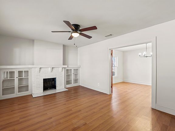 Cozy fireplaceTraditional craftsman trimFormal dining roomHard floorsWelcoming front porchStorage unit out backBeautiful built-in cabinetry