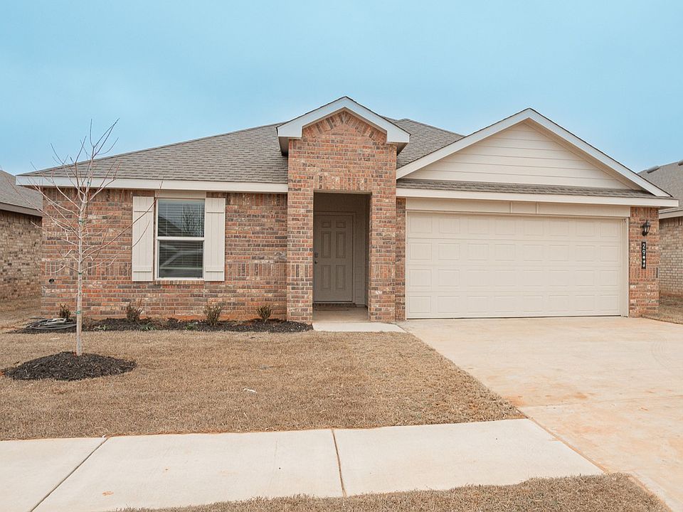Welcome to the Elgin plan a thoughtfully designed single-story home offering 1,614 sq ft, 4 bedrooms, and 2 full baths. This open-concept layout features a spacious central living area and a beautifully appointed kitchen with quartz countertops, stainless steel appliances, a gas range, a large island, and a generous walk-in pantry. The private primary suite is tucked at the rear of the home and includes a large walk-in closet and an ensuite bath with modern finishes. Additional highlights include a tankless water heater, storm shelter, washer and dryer, refrigerator, and " Kwikset keypad lock. Enjoy outdoor living with a covered patio, full sod, and a front landscaping package. Ideally located near Mustang Road with quick access to the Kilpatrick Turnpike, I-40, shopping, dining, and more. Tenant pays utilities. Renter must have Renter's insurance with $100k+ coverage