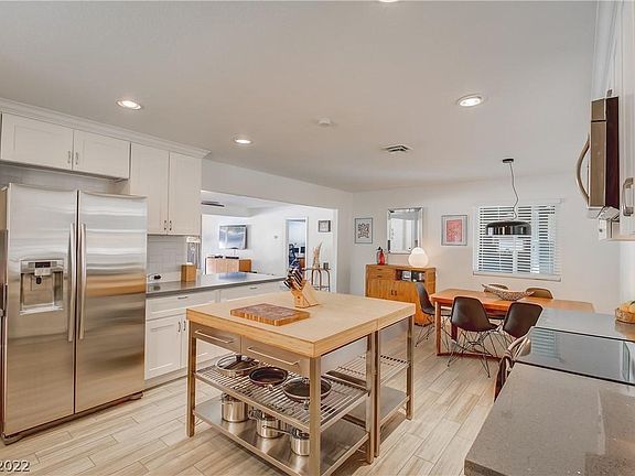 Available as a long-term or mid term rental. Location Location Location! Beautiful and furnished single story home with pool in historic McNeil Manor in the center of Las Vegas. Open and spacious floor plan. Living room offers full length windows overlooking the sparkling pool, cozy sitting area with wood burning fireplace. Chef's kitchen provides breakfast bar, dual butcher block islands, quartz counters and stainless steel appliances with lots of cabinet space. Large master with walk-in closet and remodeled walk-in shower. Large secondary bedroom. Third bedroom is currently in use as an office. Overall design offers a Mid-Century Vibe; with wood-like tile flooring and opaque-glass closet doors. Enjoy the large, private backyard with its gas BBQ and recently replastered pool and patio for entertaining! The property is a non-smoking property.