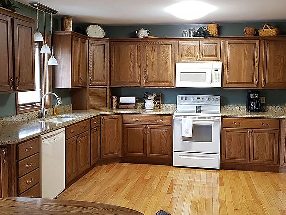 This beautiful ranch style home sits just far enough out of town to be considered country living. This 2500 sq foot home has 2 bedrooms and 1 newly updated bathroom on the main floor along with an office, utility room, living room, and a beautiful updated kitchen with Crestwood Custom Cabinetry and Quartz counter tops. The full basement has 3 non-conforming bedrooms, another updated bathroom, family room, and a furnace room. The home as a double attached garage and a new large deck off of the kitchen. This home truly has lots to offer!
