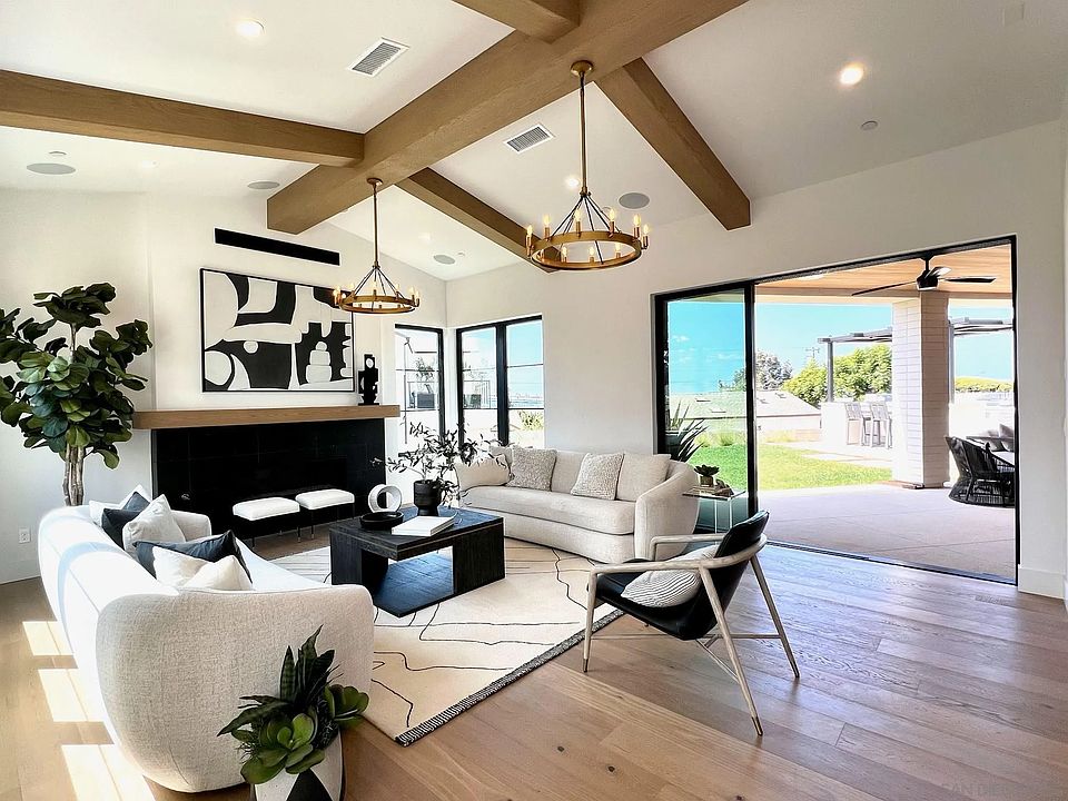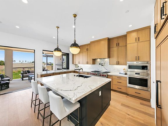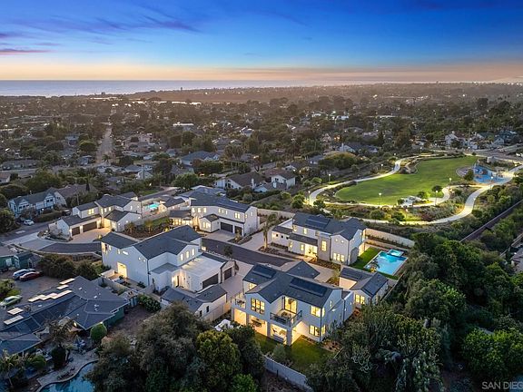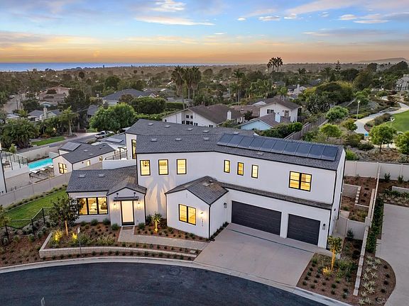 Welcome to Highland Five, an enclave of five exquisite Coastal Contemporary custom estates in Olde Carlsbad. Located a mile from the center of vibrant Carlsbad Village with the beautiful beaches just beyond. This luxurious private home was masterfully designed with family and entertaining in mind. As you enter the home you are greeted by the Great Room with its magnificent beamed and vaulted ceiling, leading one to the extraordinary chef’s kitchen with a pass-through window and slider. The professionally landscaped yard, outdoor kitchen, fireplace and covered loggia offer gorgeous views of the Pacific Ocean. The main floor is completed by a secondary bedroom/office suite, powder room, and laundry room. Upstairs the beautiful primary ensuite retreat has panoramic ocean views and a balcony perfect for watching the sunset. There are two secondary ensuite bedrooms, and a family room. The high ceilings, hardwood floors, over-sized black framed sliders and windows give the home a sense of space, light and organic contemporary style. This home was created for entertainment and the California lifestyle.