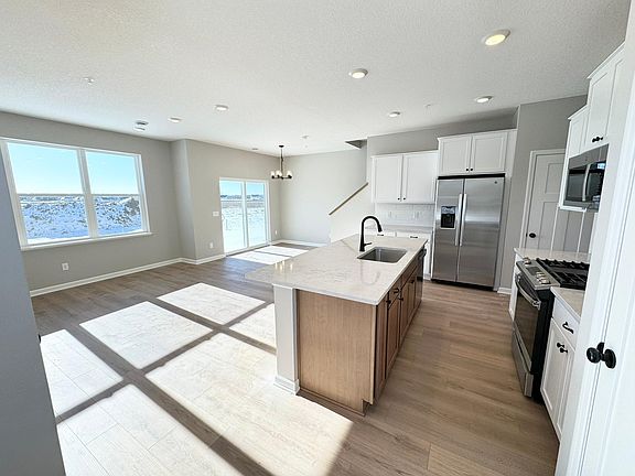 Welcome to this beautiful new construction home in Saint Michael. With 3 bedrooms and 2.5 bathrooms, this end-unit townhome offers an attractive and functional space for comfortable living. The open floorplan creates a seamless flow! The kitchen is a standout feature with matte black fixutres, stainless steel appliances, quartz countertops, and an island that doubles as a breakfast bar. You'll also love the electric fireplace in the family room creating the perfect focal point. Head upstairs to find 3 bedrooms, the laundry room, and 2 full bathrooms. The spacious owner's bedroom has an en-suite bathroom with stylish matte black hardware and large walk-in closet. Close to shopping, restaurants, and new city park with play ground, picnic area, sport courts and walking path. Acclaimed St. Michael schools with easy access to Hwy 94.