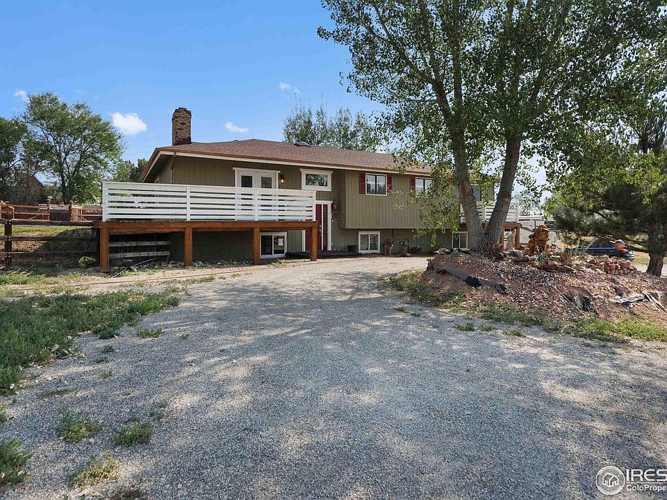 **Stunning Mountain Views & Prime Location!**Step into your dream home, where breathtaking mountain views and serene country living meet modern convenience. This beautiful bi-level residence is ideally situated near Berthoud, Longmont, and Hwy 287, offering both tranquility and easy commuting.Designed for comfort and entertaining, the open floor plan showcases a cozy wood-burning fireplace and rich hickory floors throughout the living room, dining room, kitchen, and hall. The main level features a newly updated 3/4 hall bath and two bedrooms with fresh laminate flooring. The lower level expands your living space with a large rec room, a study, and a versatile flex room with an additional 3/4 bath.Outside, you'll find ample space for outdoor enjoyment and hobbies, including a 10x30 steel pole barn, a chicken coop, and a fenced area perfect for animals. Relax on the spacious front deck with panoramic mountain views or unwind in the 4-person hot tub, set on a concrete pad.With no HOA, plenty of open space, and room for RV or boat parking, this property offers privacy, peace, and flexibility. A brand-new roof was just installed in 2024, ensuring worry-free living.Move in and start enjoying the best of Colorado living today!