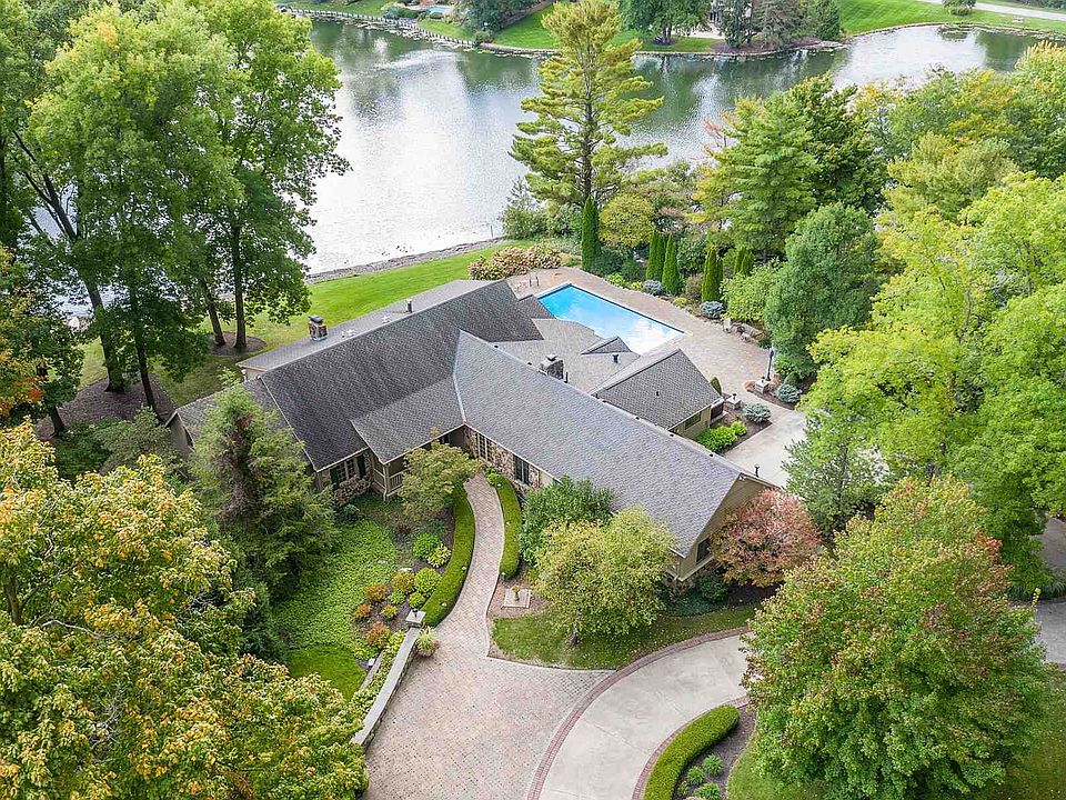 Nestled in the middle of classic Covington Lake Estates ( CLE), in the desirable SW Allen county school district of Fort Wayne, this picturesque, private, waterfront homesite has been offered for sale only once before since it was built in 1979. The developer of Covington Lake Estates, Ove Jorgensen, bought his two favorite lots in this 50 home neighborhood for his family, this being one of them. "CLE" is located in the heart of Aboite Township. It's right in the middle of the Aboite Trails network and within walking distance to a number of community assets. You will feel like you are out in the country on this premier 2.0 acre property with lush, mature trees and landscaping overlooking a small lake. The views can be enjoyed from nearly every room in the house, including the walk-out basement, 1st floor master suite, living and dining rooms and screened-in porch. The outdoor living space includes a swimming pool, hot tub and outdoor built-in BBQ, all overlooking the southern exposure water view. Oversized garages have plenty of room for 5 vehicles or other toys. Three of the garage spaces are heated and there is a lawn tractor garage. The circle drive is off the secluded cul-de-sac and is heated. The circle drive is off of a secluded cul de sac, offering the utmost in privacy. The professional chef's kitchen is every cook's dream with granite countertops, Grabill cabinets, 2 ovens and a 6 burner gas cooktop. The kitchen opens to a family room with floor to ceiling stone fireplace, living room with white painted coffered ceiling and formal dining room, all of which make great space for entertaining. You will also find his and her separate office/dens so everyone has their own workspace. The sizable laundry room is located on the first floor. The master is on the main level and includes a large sitting area and steam shower. There are 2 ensuite bedrooms upstairs with large walk-in closets. There is a 4th bedroom in the lower level walk-out with a full bathroom. The lower level also has a large rec room for movies, pool, ping pong and working out, a wet bar and fireplace. Hardwood flooring throughout most of the first floor and much of the lower level. Lots of woodwork, built-ins and quality can be found throughout this home.