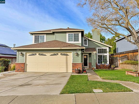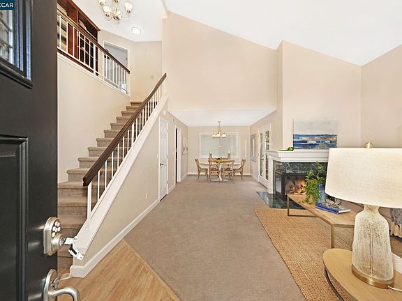 First time on market. This home has been lovingly maintained and beautifully updated by original owners. Recently installed Luxury Vinyl Plank downstairs in entry, kitchen, Laundry, family room and DS bath. Stainless appliances with granite countertops and beautiful wood cabinetry featuring glass door accents. Large pantry space with roll outs. Granite Island in kitchen w breakfast bar. Touch down desk/ workstation area off kitchen. Wall to wall carpet in living room and dining. Cozy marble fireplace, Vaulted ceilings and extra windows drench this home with maximum natural light. Double French doors open to flag stone patio area with added accent night lighting. 4 spacious bedrooms upstairs. Primary en-suite features hardwood floors and updated bath with dual vanity area, floor to ceiling tile stall shower and walk-in closet. Guest room features Murphy bed with shelving. Enjoy the private community swimming pool, club house, park and tennis courts. Community RV storage area. Near shopping, walking trail, freeway access and BART railway transfer station.
