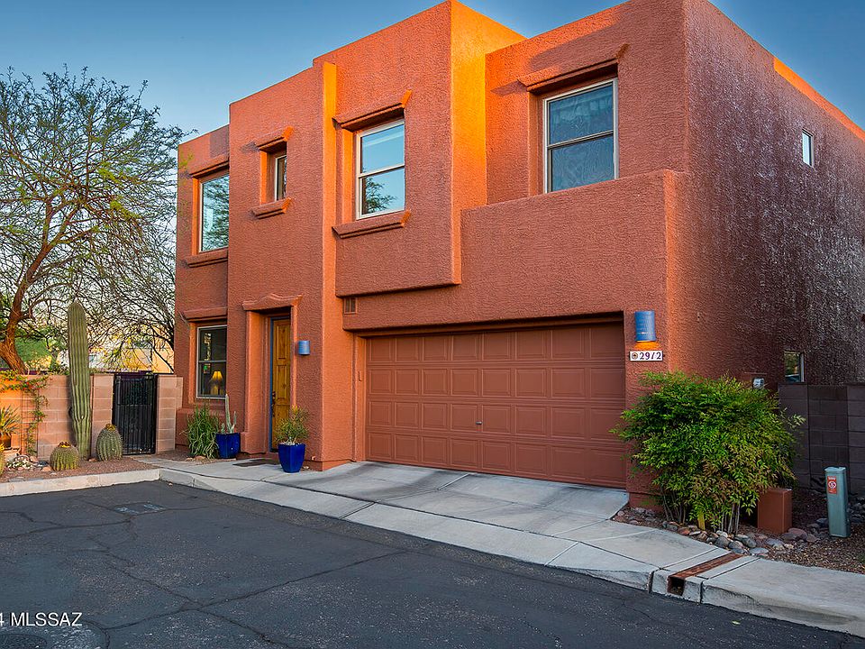 This beautiful bright 2 story home is a great example of real pride of ownership. It has 3 bedrooms and 2 full bathrooms upstairs, a half bath downstairs, a true living room in front with a high ceiling plus a separate family room / kitchen in back. It's located at the end of a small street in a very quiet community, near some of the best of central Tucson, including the Loop Bicycle path, the Lighthouse YMCA, McCormick Park, the Mini Time Machine Museum and plenty of other amenities. The wrap around yard, with its cool ramada offers wonderful outdoor living. The attached 2 car garage has plenty of room with ceiling storage shelving too. Some furnishings are available too. This house is a gem.