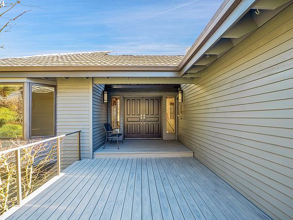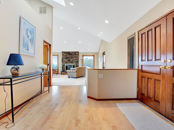 Open House Sunday cancelled. Stunning Mount Hood views will enhance your love for this bright and spacious custom home. The kitchen features an accent cooking island with induction cooktop, quartz counters, stainless appliances, and adjacent breakfast nook all taking in the view. The covered balcony is accessed through the adjacent family room. Enter the main-level living room through custom French doors. This vaulted room features a beautiful gas fireplace with color light accents. The adjacent dining room has a wall of casement windows framing the mountain and valley views. The full bathroom on the main level is beautifully remodeled with a custom tile shower with a pebble floor. A bedroom on the main level could double as a home office. The lower level features the primary suite with a serene balcony with views. The lower level also has three more bedrooms, a laundry room and an additional hall bathroom. The second lower level features an amazing room with a huge wall of windows bringing in natural light for a lot of possibilities - an art studio, home gym, or TV hangout area. This room is vaulted and has beautiful built-in cabinets and a gas stove. There is a full bathroom on this level with an additional utility sink, mini fridge and microwave. Through this area is a big surprise - a huge workshop and/or storage space under the house. This space is heated and has an exterior entrance door. Other items of note: Earthquake proof upgrade, 2 built-in vacuum systems, 2 water heaters, 2 furnaces, wired for electric vehicle charging and generator, custom storage garage shelving, functional garage mud room, established Japanese style landscape with Hot tub, convenient to New Seasons, coffee, shopping and great schools, and great neighbors in the cul de sac! [Home Energy Score = 1. HES Report at https://rpt.greenbuildingregistry.com/hes/OR10225715]