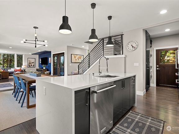 Well maintained Shorewood home. This modern 4 bed, 3.5 bath home is only 7 years old! The Sellers have upgraded many of the finishes throughout from the builder grade to a more custom feel w/new hardwood flooring, built in cabinetry, new Ipe rooftop deck w/improved waterproofing layer, designer paint & more! Main floor features a greatroom w/modern island kitchen. Ample windows provide lots of natural light. The middle floor has 3 bedrms & 2 full baths incl a primary suite w/2 walk in closets & sunny bathroom w/walk-in shower, dual sinks & toilet room. Upstairs you will find a huge flex space & full bathroom - perfect for a 4th bedroom, WFH, bonus room, playroom & more! The rooftop deck has amazing sunset & Puget Sound views! A must see!