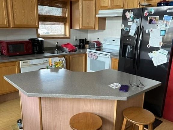 Amazing country views on the edge of town! This home is move in ready, featuring two bedrooms, one bathroom, plus a cement patio in the back! This home is nestled on nearly 1 acre, with an amazing view of the county side. Open kitchen/living room area with fireplace. Plenty of storage with the two stall attached garage. Call today to schedule your private showing!