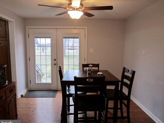 Lovely rambler just outside of town! Hardwood floors throughout, dining room overlooking large backyard, and newly remodeled kitchen with table/storage space. Down the hallway are 3 bedrooms, the largest with an ensuite bath, and alarger hall bath. Detached garage can accomodate 1 car and has electricity. Fully fenced rear yard with firepit and patio area. Washer and Dryer included.