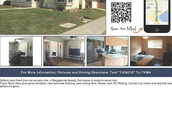 Sellers have fixed this one up very nice, a Saigepointe beauty, this house is ready to move into. Fresh Paint, New dual pane windows, new laminate flooring, new ceiling fans, Newer roof, RV Parking, Corner Lot, come and see this one before it's gone..