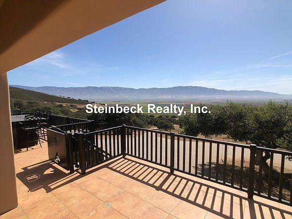 Country living at its finest! Peaceful, private, and clean. Absolutely beautiful unobstructed views of the Salinas Valley. The sun rise & sun set are stunning. This 3 bed, 2 bath + nursery/office, multi level home with freshly painted interior/exterior has updated kitchen and bathrooms. Quartz countertops, tile flooring, Pergo flooring, vaulted ceilings in the living room and master bedroom, walk in closet master bedroom, double sink vanities both bathrooms, jacuzzi tubs in both bathrooms, large walk in shower, fireplace, built in bar sink/wine . Laundry room in garage downstairs with automatic garage door. There are balconies located off of the kitchen/dining room, living room, master bedroom, and office/nursery room. Huge added storage off of the garage could be used as wine cellar. Unit is equipped with stainless steel dishwasher, gas range/oven, microwave, french door refrigerator, wine/beer chiller, washing machine, dryer machine, and water softener. There is also covered parking spaces under front balconies. Tenant pays: PGE, garbage, propane, & renters insurance. Owner pays: water, landscaping. Minimum 1 year lease, no smoking.