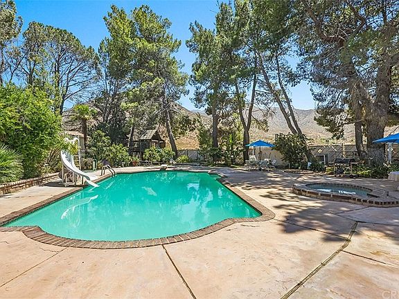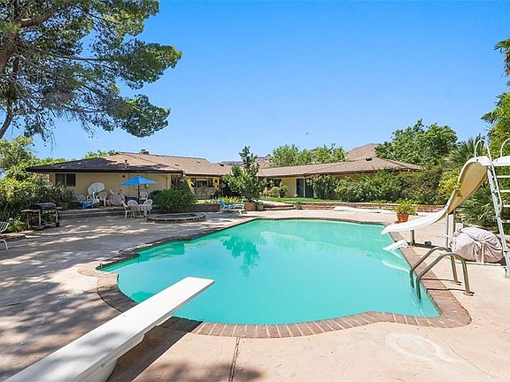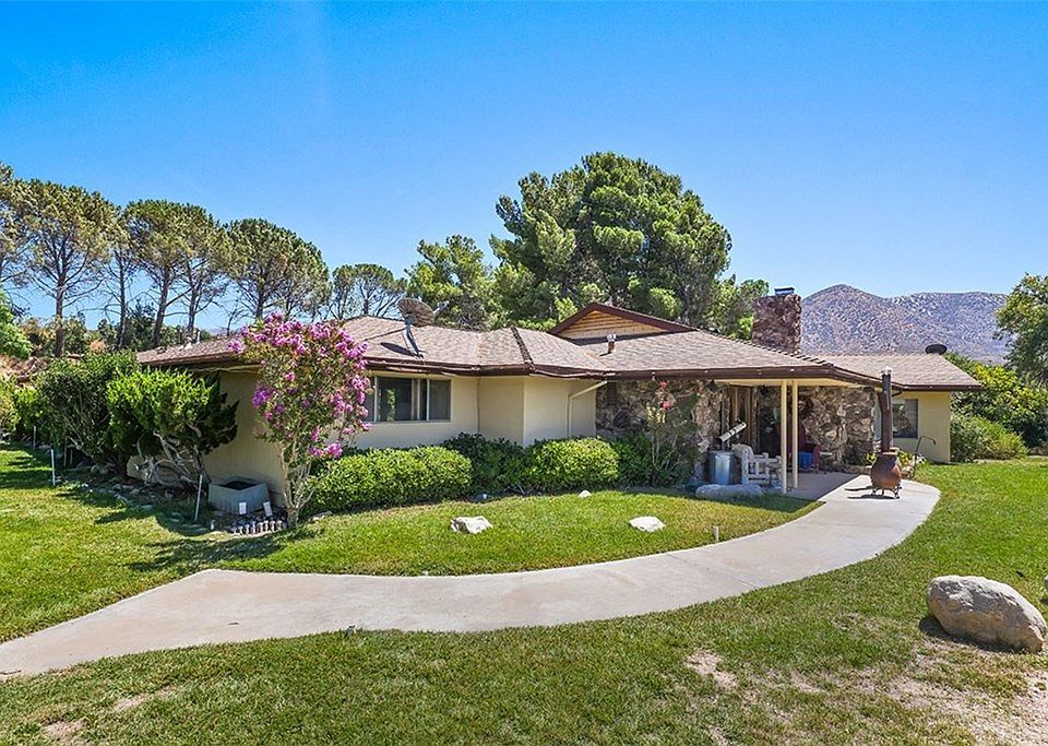 Your very own hilltop, private oasis. Excellent water supply. Lush landscaping. Very private! Amazing location. Stunning views and cool desert breezes. This custom built single story pool home, built by the Huntsinger Family in 1968-69 features 3 Bedrooms, 2 bathroom on just under 5 acres with large 40,000 gallon pool, Spa and sunset views. True craftsmanship everywhere you look. Mature trees giving ample privacy. Abundant fruit trees. Green grass. Private road leading up to the house. Horse property improved with large flat horse area with 4 Billet Barn 24 x 24 barn stalls. Ride your horses right out of the property into the national forest. Large family room with fire place. Indoor laundry room. Sunken bath tub in second bath and oversized spa tub and large walk in shower in master bath. Formal dining room with amazing views from picture window. Come for a visit. Stay for a lifetime. Welcome Home!