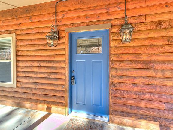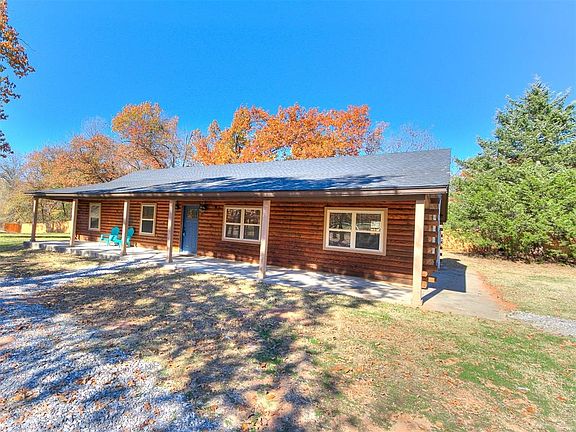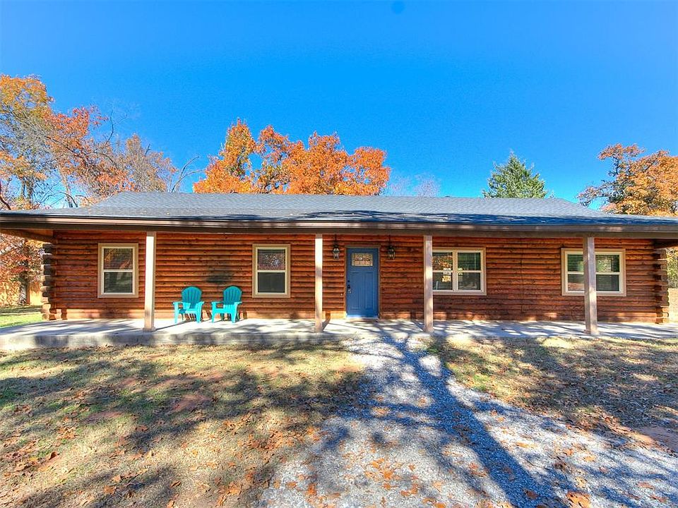 1.67 Acres right off Memorial Rd (aka SE 89th). Nice wooded lot with beautiful views and lots of space. Just minutes from I-40 & Midwest city / Tinker AFB. 3 bed 2 bath, remodeled with NEW Roof, Heat & Air, flooring, granite counters and more. East & West boundaries are to the end of the back cedar fence and then up to the road. Very neat ambiance in this REAL Log Home. Enjoy a country feel close to the city. Enjoy the full length covered front patio out of the elements.