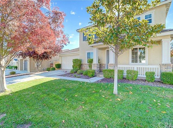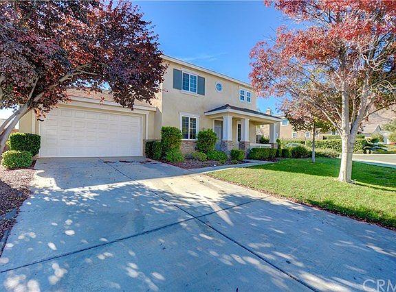 Amazing 4 Bed 2.5 Bath two story home located on a beautifully landscaped corner lot in the Heritage Lakes community of Menifee featuring a luscious green well groomed lawn and great HOA amenities such as an in ground pool, clubhouse, splash park, playground and many trails with a 25 acre lake found in the middle of the community. Built in 2005, this private home has a formal living room and dining room area and the family room has a decorative gas fireplace and opens up into the large eat in kitchen that contains stainless steel appliances, granite counters, a double oven, built in gas range, a center island with breakfast counter, built in cabinetry, and recessed lighting throughout. Also found downstairs is a laundry room with cabinets for storage and utility sink, a half bathroom, and access to the 3 car tandem garage and rear of home via the kitchen. All of the bedrooms are found upstairs where additional built in cabinets and wall desk are found along the hall. The hall bathroom has an updated vanity mirror with double sinks, a privacy door and a shower in tub. The master bedroom is spacious with multiple windows and the master bathroom includes a double sinks, jetted soaking tub, tiled walk in shower, and a huge walk in closet. The other bedrooms upstairs each have their own closet space and are decent in size. The backyard is a blank canvas and has ample space for a private in ground pool or spa. Conveniently located near major highways, dining, and entertainment.