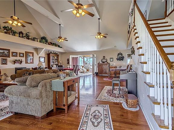 Welcome home to this custom built cape cod. Main floor consists of vaulted ceiling over spacious open living, dining, and kitchen with pellet stove. Main floor 12 x 15 bedroom with ensuite including separate shower and Jacuzzi tub and large walk in closet. Main floor laundry, large pantry, and additional ?? bath. Kitchen boasts Corian counter tops with molded sink, built in microwave, dishwasher, and disposal. Open staircase leads to 450 sq foot loft/non-conforming bedroom. French doors lead to all seasons' room and wood deck. Finished walk out basement includes full bath, French doors leading to large deck provide the perfect space for grilling and entertaining. Basement has dog door and additional entrance door. Attached garage has 2 overhead doors each with opener. House is all electric, well insulated with Trane heat pump HVAC. Maintenance free exterior of vinyl siding. Main floor square footage 1440 sq ft, finished basement 1440 sq. ft.. Home provides quiet living and privacy with 50 acres of some woods with an abundance of wildlife. Set up with additional well including Richie waterers perfect for small cattle operation. Property includes detached 24 x 24 concrete floor garage with walk door and overhead garage door, 12 x 12 metal frame loafing shed perfect for horse shelter, and 40 x 60 metal building with concrete floor perfect for storing your lake toys. 8 miles from town, 1 mile to Lake of Ozarks, and 15 mins to Truman Lake. 2025-05-23