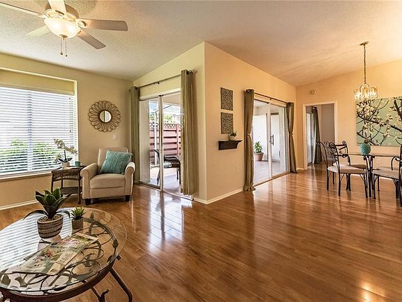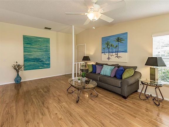 Spacious, Ground Floor Villa now available in popular 55+ community Country Village less than 5 miles from the beach! As you walk in the front door, you will see the gorgeous, wood laminate floors that are through out the entire condo, except the bathrooms that have tile. The open concept floor plan, large windows and sliders, and vaulted ceilings make this home feel bigger than it is. Master bedroom has a huge walk in closet and sliders out to your screened in patio. Large washer and dryer are conveniently located in inside closet just off the kitchen. Patio is an excellent place for entertaining and even has a great area for growing a small garden. Community amenities include pool, spa, clubhouse that can be rented our for events, and shuffle board. This maintenance free villa wont last long so schedule your showing today!