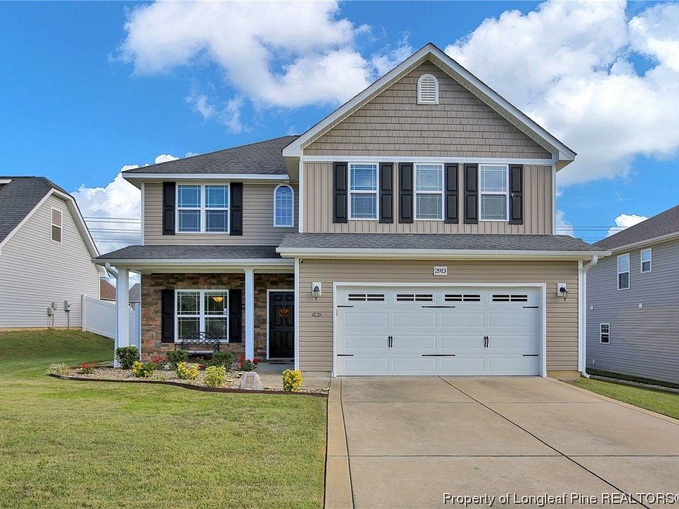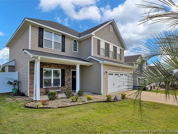 Immaculate Home 3 bedrooms with finished bonus room area. Laminate flooring in foyer, formal dining room, great room, kitchen and nook. Fireplace in great room, kitchen has breakfast bar, granite countertops, stainless steel appliances, tile backsplash, tile flooring in bathrooms, large master bedroom, garden tub sep shower, double vanity, large WIC, covered rear patio outside storage, privacy fence, Jack Britt schools, great location close to shopping and Post. The garage is cable ready has outlet for a tv.