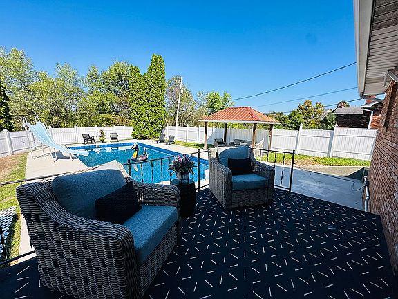 Welcome to this thoughtfully updated and move in ready home. 2913 Bonanza Dr. is nestled at the peak of a neighborhood that dreams are made of. The seat of this lovely home is a spacious double lot featuring 2 driveways, 3 garages, fenced outdoor space and an in-ground pool. Stepping inside you will discover newly installed flooring, windows, lighting, hardware, appliances, quartz countertops, interior/exterior doors and fresh paint throughout. Perfect for a family this ranch style home includes 3 bedrooms, 2 full baths and an open living kitchen area with a fireplace. A finished updated basement is an added bonus! There you will find another living space, a 1/2 bath, the laundry area, 2 bonus rooms and access to the 3rd garage. Let's not forget the cherry on top...an installed General system!