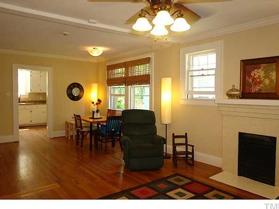 Charming 1930's Bungalow lovingly maintained! Nearly 1/2 acre lot in convenient locale close to Duke, UNC, hwys, shops..walk to Foster's! Large Covered Porch. Hardwoods, spacious rooms, soft neutral paints. Modern Kitchen w/granite-look counters, white cabs, newer appl. Modern ceramic tile in Bathrm. Roof repl appx 2000. Carport, Outbldg, Nice rear deck, huge fenced yd. True Gem!