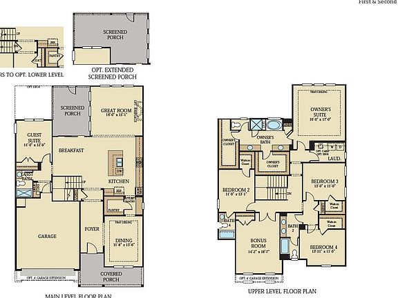 Lennar presents the popular Monaco plan. Downstairs features a formal dining room with a butler's pantry pass through to the kitchen. Large kitchen has sizable island with adjacent breakfast area and great room. Downstairs is completed by guest bedroom with hallway full bathroom. Upstairs features a bonus room, 2 bedrooms sharing hall bathroom, 1 bedroom with attached bathroom, and a large master suite with attached bathroom. Separate closets, separate bathroom vanities, and a separate garden tub and tile shower with seat are featured in the spacious owners bathroom. Outside features a screen porch with an extended deck.