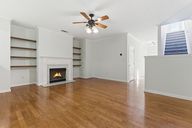Classic fireplace and mantelOne-car garagePrivate patioCovered front porchVaulted primary suitesFamily roomWooded backdrop