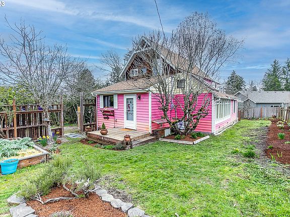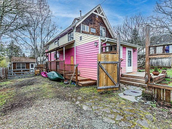Welcome to this unique and darling pink home! Spacious kitchen with butcher block counter tops, island and an eating area. Sunroom features a wall of windows, skylights, and an attached den area. Family room has beam ceilings, built ins, bay window with access to the deck and private backyard. Primary bedroom opens to a covered deck. Second bedroom has a fun loft space. Upstairs bathroom has floating cork floors, stand alone tub and a shower that was redone in 2016. Enjoy a number of raised garden beds, fruit trees and storage/hobby shed. Near schools, restaurants, and shopping. This home is special and the possibilities are endless! Call your broker today for a showing.