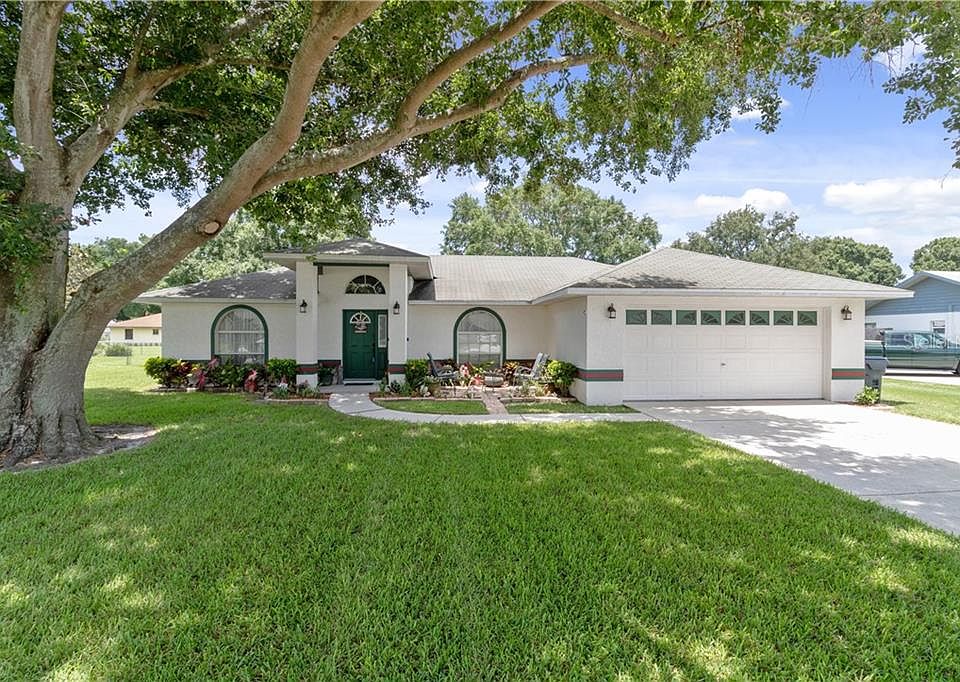 Very well maintained home in North Lakeland's Tangerine Trails Community. This spacious contemporary POOL home is USDA eligible and situated on a large .26 acre lot in a deed restricted neighborhood. Nice open floor plan with a living/dining/kitchen combination perfect for entertaining. Your kitchen features include: Silestone counters, newer appliances, closet pantry, pass thru window to the porch and a breakfast bar. French doors in the dining area overlook the screened porch, sparkling pool and privacy fenced yard. Very spacious master bedroom and master bath with a wonderful walk-in shower, dual sinks, updated wood vanity, Silestone counter and walk-in closet. Great split plan with large bedrooms, screened porch, 30'x15' pool, 14'x12' Smithbilt shed for extra storage. White PVC fence, inside laundry with sink and more. Closed to shopping, schools, recreational areas and easy access to I4. Welcome home!