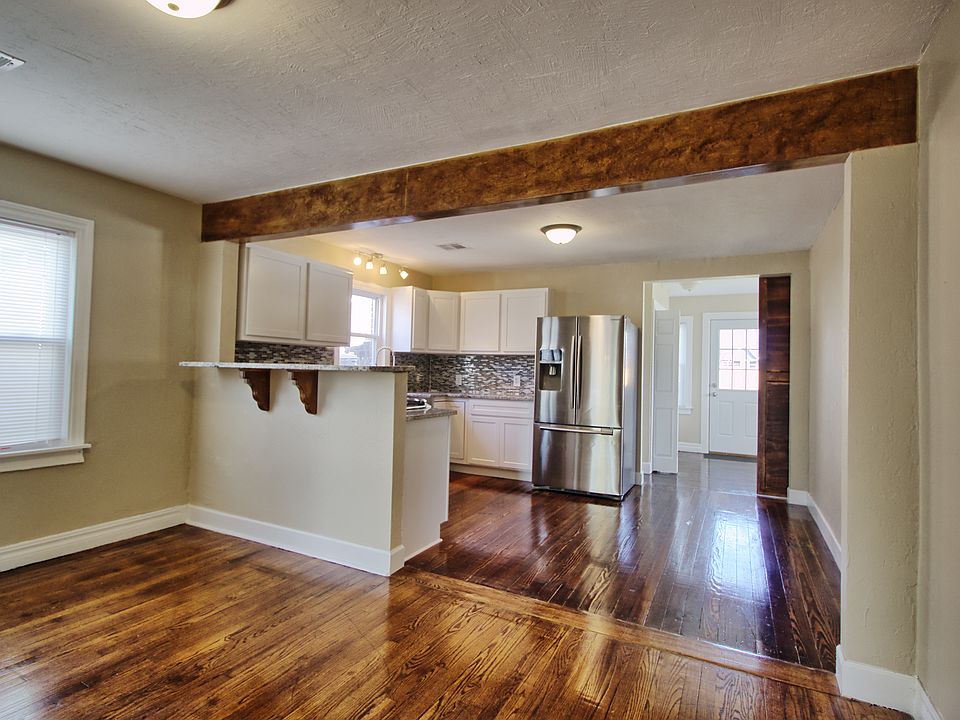 Fall in love with the old-world charm of this updated 1940s ranch style home. From the original wood floors to the custom wood beam and barn wood door your guest will be impressed with the immaculate and airy space offered. You will certainly enjoy winding down in front of the oversized picture window on looking the nicely manicured front lawn. In the heart of the home the kitchen features a bar, granite countertops, glass tile back splash, Large steel Farmhouse sink, all stainless-steel appliances included! This home boast a completely remodeled bathroom and modern color palette. Third bedroom could be used as a bonus room, office, or sunroom. Large detached garage and backyard. New HVAC, Electrical panel, windows, and roof over garage all replaced in 2016! Great location close to I-44 and Oklahoma State Fair Grounds. Call to Schedule your viewing today!