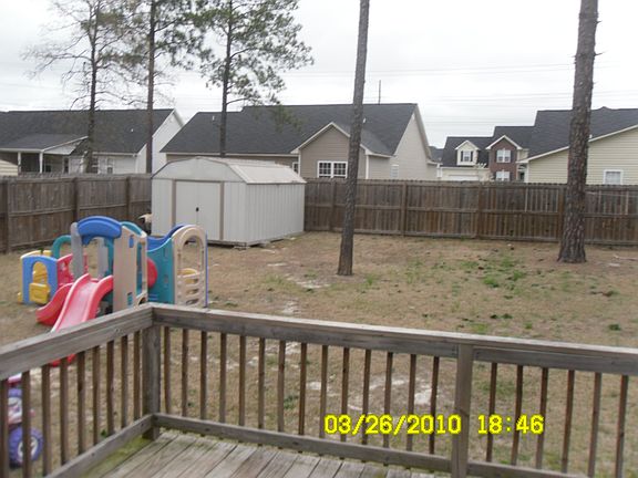 Thanks for the interest in my home. It is located at the end of a could sac. In a very family friendly neighborhood. In Hope Mills. It has wood window treatments. A big screen tv mounted on the wall in the living room. Another one in the master bed room. stainless steal appliances. Granite counter tops. 4 bed rooms with a study, office or a 5th bed room. All bed rooms are upstairs exp the master it is down stains. The master has a walk in closet. 2 car garage. Privacy fenced in back yard with a shed. Available Aug. 1st Hope you have a fabulous day. slfreedle@yahoo.com