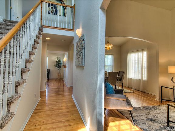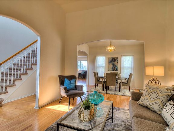 As you open the front door, you're greeted with a formal foyer, high open ceilings, decorative open archways. To your right is a formal sitting area and dining room. As you go towards the back of the house you have the living room open to the eat-in area off of the kitchen. There is so much natural light that streams into this kitchen and living room making it cheery and bright. Towards the garage you have a half bath perfect for company and a laundry room. It is an open floor plan great for entertaining. Upstairs you have the owners suite with walk-in closet, and 5 piece bath. Two additional bedrooms and full bath on this level. No one behind you so you can enjoy beautiful Mountain views especially from the 2nd floor. Basement is finished with an additional bedroom and 3/4 bathroom that's at garden level. Xeriscaped back yard with huge patio. Close to shopping, dining and public transportation.