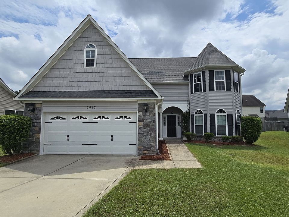Welcome to this stunning 4-bedroom, 2.5-bathroom two story home located in the Jack Britt school district. This property boasts beautiful laminate flooring through most of the home. The dining room, enhanced with elegant wainscot paneling, provides an ideal setting for more formal occasions. The large living room features a lovely fireplace (FOR DECORATION ONLY-NOT FOR USE) with a TV mount and offers a warm and inviting atmosphere. The kitchen, equipped with stainless appliances and granite countertops, also features a cozy breakfast nook with wainscot paneling for casual dining. The convenient laundry room comes with washer and dryer hookups and is located right off the kitchen. Large closets throughout the home offer ample storage space. The primary suite is a true retreat, complete with trey ceilings, a luxurious bathroom featuring a jetted tub & separate shower and a finished bonus room, perfect for a home office space.