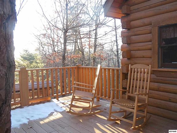 Rental income producing, 1BR/BA log cabin, with mountain views. Sold fully furnished. Interior features, inc. vaulted ceilings, wood flooring, a Master bedroom on the 2nd floor loft. Washer and dryer closet and fully equipped appliances in the eat in kitchen. The living room has a stone/gas log fireplace and sliding doors leading onto a covered balcony, with a hot tub. Great as a rental investment, second home or getaway! Minutes from Pigeon Forge, Gatlinburg, Dollywood, attractions and shopping! A Must see!