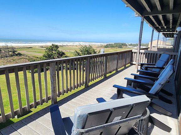 Your Oceanfront Paradise Awaits! Enjoy a fully furnished ground-level condo boasting Pacific Ocean panoramic views. Newer furniture and appliances, electric fireplace, and floor to ceiling windows for that expansive view. A large wrap-around deck and beach access allow for moments of luxury and tranquility.Your retreat comes complete with a detached garage, storage room, and access to HOA amenities such as a spacious workshop, tennis court, party room and a large common BBQ entertaining deck. As day turns to dusk, be captivated by the mesmerizing sunsets painting the sky with amazing colors over the ocean. Come experience the ultimate in seaside living.