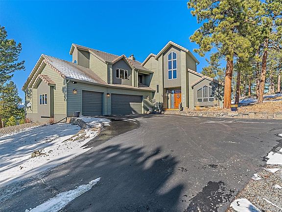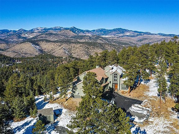 Fabulous continental divide snowcap views and access to Denver Parks open space make this the perfect home. You'll love the private location on 4 acres and a stressless drive to Denver or the mountains. Do you require space for "virtual" work or school? 2 spacious offices (main level and upper level), plus 4 bedrooms will accommodate your needs. Open floor plan includes the great room and kitchen with access to a redwood deck for entertaining or relaxing in the custom cedar soaking tub. A custom workshop off the garage is impressive with built-ins, storage and more. The master level is private with amazing views from the bedroom and bath, plus a custom, spacious walk in closet and easy access to the laundry room. Both upper level bedrooms have views and en-suite private baths. The lower level bedroom has views and would make an inviting, private guest retreat. The family room has access to a covered patio (with views!) and the bar area will be a great area for entertaining. Several bonus rooms in the lower level include a workout room with a basketball hoop and a soundproof recording studio or office.