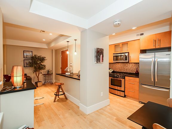 Ideally located, this two bedroom, two full bath condo on 11th Street is just steps to the Columbia Heights Metro. This unit offers a great open layout with two spacious bedrooms, blonde hardwood floors, a beautiful modern kitchen, fireplace and stackable washer/dryer as well as great closet space. Mater bedroom features ensuite bath with double vanities, tub and showe