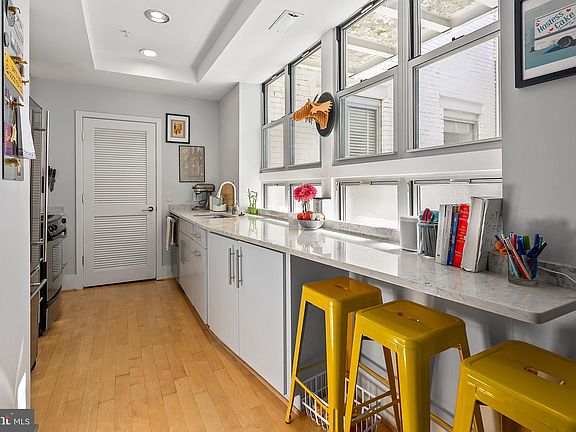 Bright and beautiful Columbia Heights condo in boutique, pet-friendly building with low condo fees! This 2 bedroom/2 bathroom residence boasts 1,062 sqft of living space over two levels, gleaming hardwood floors, a new HVAC, and an in-unit washer/dryer! The living/dining area has room to stretch out, and features perfect built-ins, a gas fireplace, and oversized windows. With custom light fixtures and soaring ceilings, this is truly an entertainers dream! Step into the kitchen to find a suite of stainless steel appliances, newly painted kitchen cabinets, and a fabulous breakfast bar. Make working from home easy, with a perfect office-like set up! Each spacious bedroom is flooded with natural light, and the Primary Suite is adorned with a spa-like ensuite bathroom, complete with an updated double vanity. Live in the heart of the city, with the METRO, shopping, and DCs best dining all nearby. Welcome home!