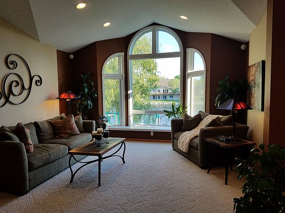 Text/Call: 701-729-2024. Realtors welcome. Live on the lake in the middle of town! Beautiful Footitt built home with southern exposure overlooking Bluemont Lakes. Open floor plan with large windows and beautiful views. Super insulated for energy efficiency and quiet. Many extras including 3 car tandem garage, central vac, triple sump pumps with back-flow valve on main sewer, and wood burning stove in basement for cozy winter nights. Den could be used as 4th bedroom.