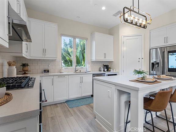 Discover a unique opportunity to own a 2020-built home in the desirable area of Irvine. This exceptional residence is ideally situated near luxurious resort-style amenities and miles of scenic trails. Nestled in a rare gated community, it epitomizes the best of California-style living. The home boasts an array of builder upgrades and premium features, including elegant vinyl flooring throughout the downstairs and in the laundry room. The kitchen and bathrooms are enhanced with sleek Quartz countertops, a striking backsplash, upgraded faucets, custom knobs, and stylish lighting. Each bedroom is equipped with custom ceiling fans and lighting. The property exudes sophistication with plantation shutters throughout and electric blinds for panoramic sliding doors that seamlessly open to the backyard. This smart home offers cutting-edge technology with a Lutron lighting system, Honeywell heating and air conditioning, and a phone-controlled garage. Additional features include whole-house insulation, recessed lighting, custom beveled framed mirrors, and a clear glass shower enclosure. Conveniently located just minutes from Irvine Spectrum and within walking distance to Los Olivos shopping, this home offers both luxury and convenience. Don’t miss your chance to see this exceptional property—schedule a visit today!