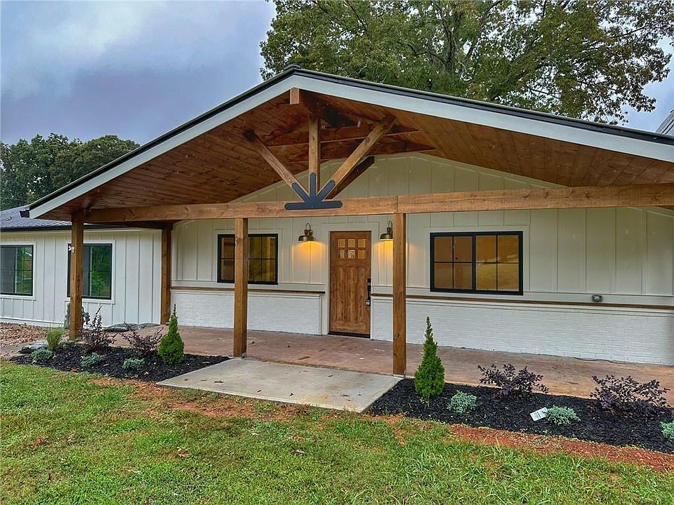 HUGE PRICE REDUCTION!!! Seller Motivated! Welcome to this beautifully remodeled farmhouse, just minutes from the scenic shores of Lake Lanier! This 3-bedroom, 2-bath home has been completely transformed, blending modern comforts with timeless character. Every detail has been updated, including new framing, plumbing, electrical, insulation, siding, roof, windows, septic tank, main water line, and EVERYTHING you see inside - ensuring years of worry-free living. Outside boasts numerous outdoor living areas with a rocking chair front porch and two decks out back! Inside you'll fall in love with the modern farmhouse style with open concept living/dining/kitchen area. Custom cabinets, quartz countertops, designer tile, brick fireplace with cedar mantle, and so much more! The primary bedroom boasts a spa like bathroom, custom closet and french doors leading to a private deck! Across the house you will find a separate den leading to the 2 secondary bedrooms and another private deck! With Lake Lanier just a short walk away, you can easily enjoy boating, fishing, and other outdoor activities. Don’t miss this rare opportunity to own a fully remodeled farmhouse on almost 1 acre in a prime location with no HOA!