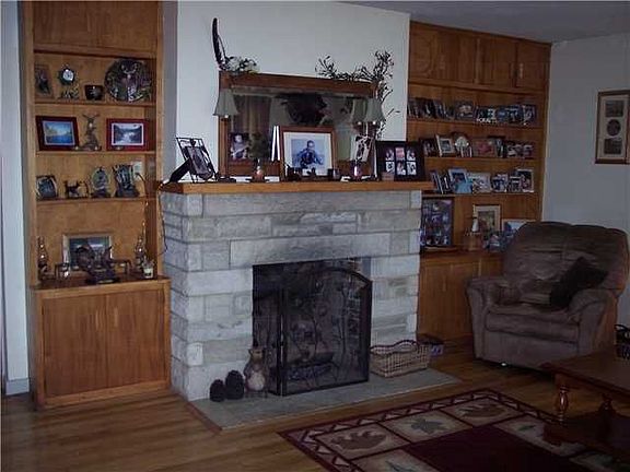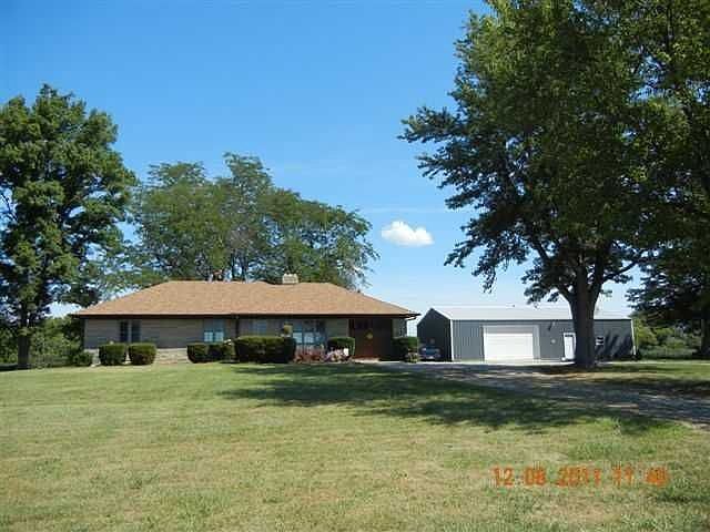 Heading home to your own little piece of the country - this home is awesome offering custom floor plan. Large living room w/walled bookshelves stone fireplace. Huge dining room w/walled window door to patio. Hardwood floors. 30x56 Pole Barn w/loft overhead door w/opener, Gas heated "man cave" plus wood burner in workshop area of barn to take the chill off. 2-100 amp electric + 220. This is an exciting property for the people that want to be in the country.
