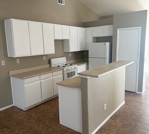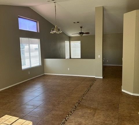 Nice single story home with vaulted ceilings, breakfast bar, separate laundry room with washer and dryer, master bedroom with walk-in closet and dual sinks and tub and shower combination.